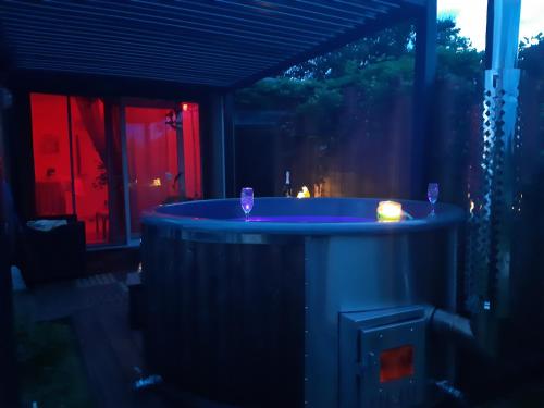 ![]() ![]() This holiday home's standout feature is the hot tub. This holiday home includes 1 bedroom, kitchenette, a terrace and 1 bathroom with a walk-in shower. Guests will find a stovetop, a refrigerator, kitchenware and an oven in the kitchenette. The holiday home also features a barbecue. The holiday home offers a private entrance, a coffee machine, a wardrobe, a flat-screen TV, as well as garden views. The unit has 1 bed. |