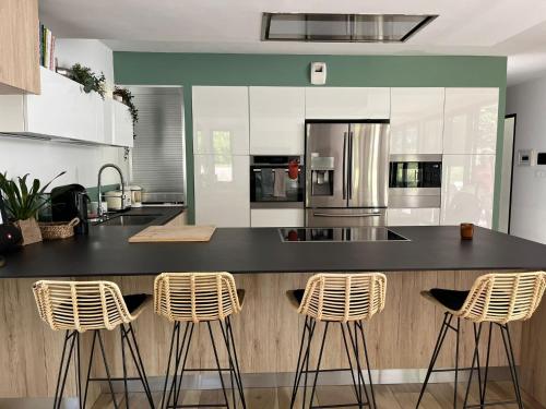 Situé à Chaponost, l’hébergement VILLA piscine à proximité de Lyon offre une vue sur la piscine. Il propose une piscine extérieure ouverte en saison, un jardin, une terrasse et une connexion Wi-Fi gratuite. Cet hébergement met à votre disposition une piscine privée et un parking privé gratuit. Cette villa avec climatisation se compose de 6 chambres, d'un salon, d'une cuisine entièrement équipée avec un réfrigérateur et une machine à café, ainsi que de 3 salles de bains avec une douche et des articles de toilette gratuits. Des serviettes et du linge de lit sont disponibles. L’établissement VILLA piscine à proximité de Lyon dispose d’un bain à remous. Vous séjournerez à respectivement 6,4 km et 9,2 km de ces lieux d’intérêt : Musée des Confluences et Théâtre antique de Fourvière. L'aéroport le plus proche (Aéroport de Lyon - Saint-Exupéry) est à 36 km. |