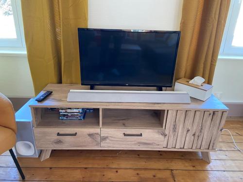 Situé à Cherbourg-en-Cotentin, à seulement 1,8 km de La Cité de la Mer, l'établissement Au logis de Abi propose un hébergement avec vue sur la cour intérieure, une connexion Wi-Fi et un parking privé gratuits. Vous séjournerez à 49 km du parc naturel régional du Marais du Cotentin et du Bessin, à 6,3 km du parcours de golf de Cherbourg et à 38 km du parcours de golf de La Presqu'île du Cotentin. Cet établissement non-fumeurs se trouve à 32 km du fort de Tatihou. Cet appartement comprend une chambre, une cuisine équipée d'un four et d'un micro-ondes, une télévision à écran plat, un coin salon et une salle de bains pourvue d'une douche. Pour plus d'intimité, l'hébergement dispose d'une entrée privée. Si vous voyagez avec des enfants, l'appartement dispose d'équipements de jeux extérieurs. Vous pourrez faire des randonnées à pied dans les environs. L'Au logis de Abi se trouve à 38 km du musée aéroporté et à 41 km du parcours de golf Côte des Isles. L'aéroport de Caen-Carpiquet est implanté à 120 km. |