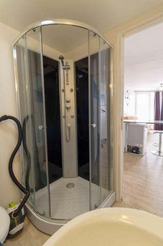 Appartement 1 Chambre    This apartment comes with a kitchen, a seating area, 1 separate bedroom and 1 bathroom with a shower. In the well-equipped kitchen, guests will find a refrigerator, kitchenware, an oven and a microwave. The apartment features a flat-screen TV with streaming services, a washing machine, a tea and coffee maker, heating as well as city views. The unit has 1 bed. | ||