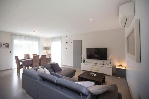 Situé à Chevrières, l’hébergement Belle villa familiale à la campagne et sa piscine offre une vue sur le jardin. Il comprend une piscine extérieure ouverte en saison, une terrasse et une connexion Wi-Fi gratuite. Cette villa possède une piscine privée, un jardin et un parking privé gratuit. Cette villa avec climatisation se compose de 4 chambres séparées, d'un salon, d'une cuisine entièrement équipée avec un réfrigérateur et un lave-vaisselle, ainsi que de 2 salles de bains. Une télévision à écran plat est à votre disposition. Vous séjournerez à 43 km de ce lieu d’intérêt : Col de Parménie. L'aéroport le plus proche (Aéroport de Grenoble-Alpes-Isère) est à 25 km. |