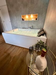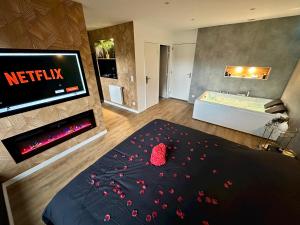 ![]() ![]() The hot tub and fireplace are the standout features of this apartment. In the fully equipped kitchen, guests will find a stovetop, a refrigerator, kitchenware and an oven. Boasting a balcony, this apartment also features a coffee machine, a dining area and a flat-screen TV. The unit has 1 bed. |