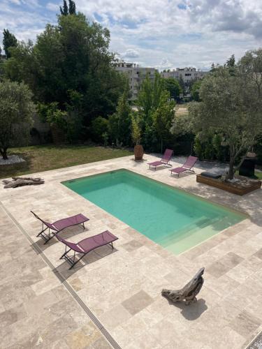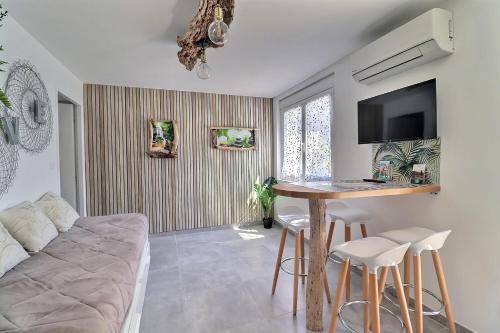 Situé à Clermont-lʼHérault, l’hébergement Location Appartement saisonnier offre une vue sur le jardin. Il possède une piscine extérieure ouverte en saison, une terrasse et une connexion Wi-Fi gratuite. Cet appartement comprend une piscine privée, un jardin et un parking privé gratuit. Cet appartement comporte 1 chambre, une télévision à écran plat, la climatisation et un salon. Cet hébergement possède une cuisine. Vous séjournerez à respectivement 38 km et 40 km de ces lieux d’intérêt : Stade de La Mosson et GGL Stadium. L'aéroport le plus proche (Aéroport Montpellier Méditerranée) est à 49 km. |