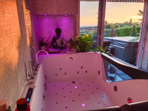 | Spa de la Lune - Private love room suite with terrace and view - Air Conditioned- Double jacuzzi - Sauna - King size bed - Free WIFI - Free parking - Free breakfast - Close to CDG airport and to the North of Paris : réservez avec Booking.com ! |