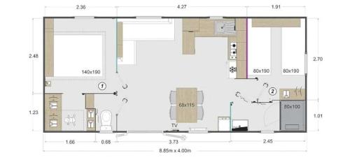 ![]() ![]() ![]() ![]() Featuring a private entrance, this mobile home is comprised of 2 bedrooms and 1 bathroom with a shower. Meals can be prepared in the kitchen, which is fitted with a stovetop, a refrigerator, a dishwasher and kitchenware. This mobile home offers heating and a TV. The unit offers 3 beds. |