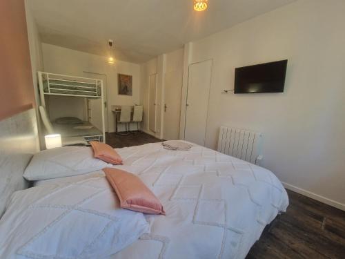Chambre Triple avec Salle de Bains Privative The triple room provides a wardrobe, an electric kettle, as well as a private bathroom featuring a shower. This triple room offers heating and a flat-screen TV. The unit offers 3 beds.