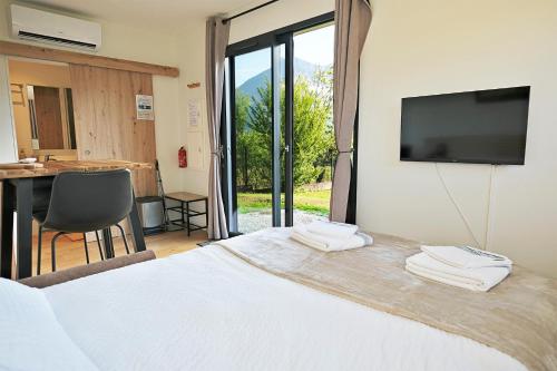 ![]() ![]() Guests will have a special experience as this studio features a pool with a view and a hot tub. The studio provides a dining area, a wardrobe, as well as a private bathroom featuring a shower and a hairdryer. The well-fitted kitchenette features a stovetop, a refrigerator, kitchenware and an oven. The air-conditioned studio offers a flat-screen TV, a private entrance, soundproof walls, a tea and coffee maker as well as mountain views. The unit offers 1 bed. |