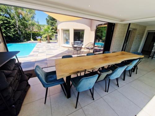Situé à Collonges-au-Mont-dʼOr, l’hébergement Villa familiale de Collonges offre une vue sur le jardin. Il possède une piscine extérieure, une terrasse et une connexion Wi-Fi gratuite. Cette villa possède une piscine privée, un jardin et un parking privé gratuit. Cette villa avec climatisation se compose de 7 chambres, d'un salon, d'une cuisine entièrement équipée avec un réfrigérateur et une machine à café, ainsi que de 5 salles de bains avec une douche et des articles de toilette gratuits. Des serviettes et du linge de lit sont à disposition. Vous séjournerez à respectivement 10 km et 10 km de ces lieux d’intérêt : Gare de Lyon-Part-Dieu et Musée des Beaux-Arts de Lyon. L'aéroport le plus proche (Aéroport de Lyon - Saint-Exupéry) est à 30 km. |
