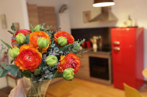 L’hébergement Au buisson de roses se situe dans le centre de Colmar, à respectivement 400 mètres et 200 mètres de ces lieux d’intérêt : Maison des Têtes et Collégiale Saint-Martin. Il possède une connexion Wi-Fi gratuite et offre une vue sur la ville. Cet appartement est à respectivement 1,4 km et 3,4 km de : Gare de Colmar et Parc des expositions et des congrès de Colmar. Cet appartement se compose de 1 chambre, d'un salon, d'une cuisine entièrement équipée avec un réfrigérateur et une machine à café, ainsi que de 1 salle de bains avec une douche et un sèche-cheveux. Des serviettes et du linge de lit sont mis à votre disposition. Vous séjournerez à respectivement 28 km et 41 km de ces lieux d’intérêt : Château du Haut-Kœnigsbourg et Parc Expo Mulhouse. L'aéroport le plus proche (EuroAirport Mulhouse) est à 55 km. |