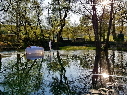 Situé au cœur du Périgord Noir, le Manoir d'Hautegente vous réserve un accueil chaleureux dans une ancienne forge du XIIIe siècle reconvertie en un hotel familial et élégant. Le Manoir d'Hautegente vous propose des chambres à la décoration raffinée et au style romantique. Elles comprennent tous les équipements que vous attendez pour un séjour serein, dont des chaînes satellite. Chaque chambre offre une vue sur le parc ou la rivière. Après une journée de visites touristiques ou de rendez-vous d'affaires, détendez-vous en prenant un verre au coin du feu ou en savourant un dîner gastronomique sur la terrasse, par beau temps. Le Manoir d'Hautegente permet d'accéder à un grand choix d'activités de loisirs : vous pourrez pêcher, faire du canoë ou encore des balades à vélo. |