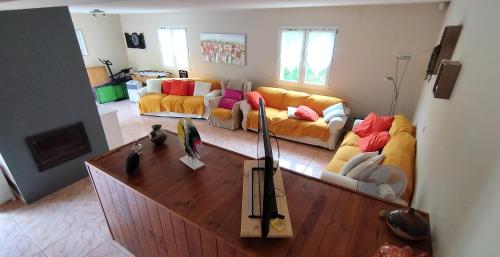 Situé à Corneilla-de-Conflent, l’hébergement Belle Villa Famille - Piscine - Entre Mer et Montagne offre une vue sur la piscine. Il comprend une piscine extérieure ouverte en saison, un jardin, un salon commun et une connexion Wi-Fi gratuite. Cette villa comprend un parking privé gratuit et se trouve dans une région où vous pourrez pratiquer des activités telles que la randonnée, le ski et le ping-pong. Disposant d’une terrasse et offrant une vue sur la montagne, cette villa possède 5 chambres, un salon, une télévision à écran plat, une cuisine équipée avec un réfrigérateur et un lave-vaisselle, ainsi que 3 salles de bains avec une douche. Cet hébergement met à votre disposition des serviettes et du linge de lit. L’établissement dispose d'un local à skis. Vous séjournerez à respectivement 23 km et 45 km de ces lieux d’intérêt : Golf de Marcevol et Les Angles. L'aéroport le plus proche (Aéroport de Perpignan - Rivesaltes) est à 56 km. |