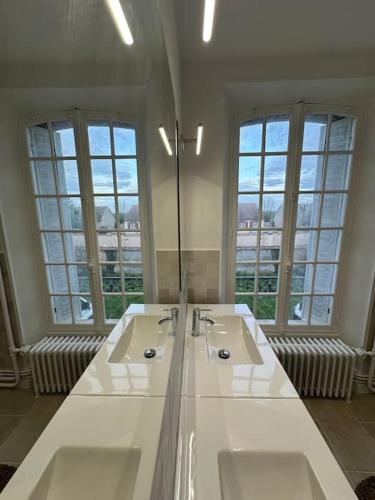 Situé à Croisilles, l’hébergement La Villa Bourgeoise offre une vue sur le jardin. Il propose une terrasse et une connexion Wi-Fi gratuite. Cet hébergement est installé à 14 km de : Gare de Dreux. Il comprend un jardin et un parking privé gratuit. Cette villa compte 5 chambres, une cuisine avec un réfrigérateur et un lave-vaisselle, une télévision à écran plat, un coin salon, ainsi que 3 salles de bains possédant un bain à remous. Des serviettes et du linge de lit moyennant des frais supplémentaires. L’établissement La Villa Bourgeoise dispose d’un bain à remous. Vous séjournerez à respectivement 14 km et 16 km de ces lieux d’intérêt : Parc des expositions de Dreux et Chapelle Saint-Louis. L'aéroport le plus proche (Aéroport de Paris - Orly) est à 80 km. |