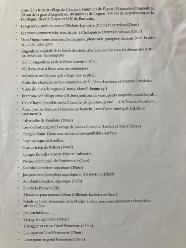 Cet hébergement met à votre disposition une piscine privée, une connexion Wi-Fi gratuite et un parking privé gratuit. Cette maison de vacances possède une terrasse, 1 chambre, un salon et une cuisine bien équipée. Une télévision à écran plat est à votre disposition. Vous séjournerez à respectivement 21 km et 43 km de ces lieux d’intérêt : Golf de l'Hirondelle et Bourdeilles Castle. L'aéroport le plus proche (Aéroport Bergerac Dordogne Périgord) est à 96 km. |
