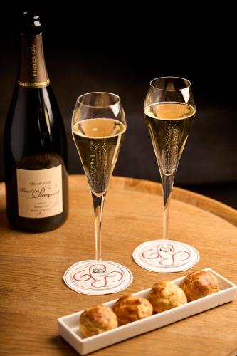 Bénéficiant d'un emplacement privilégié au cœur de Dijon, à proximité du centre historique, des musées et des rues commerçantes, l'Hostellerie Du Chapeau Rouge occupe un ancien hôtel particulier de caractère offrant tout le confort moderne. Les chambres de l'Hostellerie du Chapeau Rouge présentent un espace de vie élégant et fonctionnel doté d'une salle de bains privative. Le restaurant gastronomique, récompensé par 2 étoiles dans le guide Michelin, vous servira une cuisine créative et raffinée préparée par le chef William Frachot accompagnée d'une excellente carte des vins. Vous pourrez par ailleurs vous détendre dans le spa gratuit équipé d'un hammam et d'un sauna. La gare de Dijon vous attend à 800 mètres. Enfin, vous pourrez rejoindre la route des vins de Bourgogne en 15 minutes de route depuis l'établissement. |