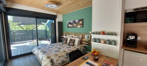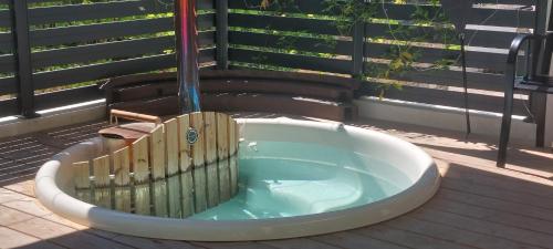 ![]() ![]() This apartment's special feature is the hot tub. Featuring a private entrance, this apartment consists of a kitchen, 1 bedroom and 1 bathroom with a walk-in shower and a hairdryer. Guests can make meals in the kitchen that is equipped with a refrigerator, a dishwasher, kitchenware and a microwave. The apartment provides a coffee machine, a wardrobe, heating, a flat-screen TV, as well as garden views. The unit offers 1 bed. |