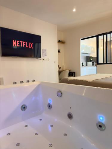 L’hébergement Le Nid de la Chouette - Gare & Cité by Apparts Spa Dijon se situe à Dijon et possède un bain à remous. Cet appartement possède un parking privé gratuit, un service d'étage et une connexion Wi-Fi gratuite. Cet appartement comprend 1 chambre, une télévision à écran plat avec les chaînes du satellite, une cuisine équipée avec un réfrigérateur et un micro-ondes, ainsi que 1 salle de bains avec une douche. Des serviettes et du linge de lit sont mis à votre disposition. Cet établissement 4 étoiles dispose d’un bain à remous et d’un spa. Vous séjournerez à proximité de ces lieux d’intérêt : Église Saint-Philibert, Gare de Dijon et Arrêt de tramway Foch-Gare. L'aéroport le plus proche (Aéroport de Dole-Jura) est à 51 km. |