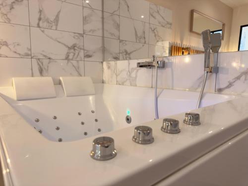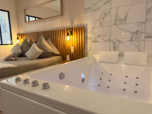 ![]() ![]() This suite offers a hot tub. Boasting a private entrance, this suite also includes 1 bedroom, a seating area and 1 bathroom with a walk-in shower and a bath. In the well-fitted kitchen, guests will find a stovetop, a refrigerator, kitchenware and a microwave. This suite has soundproof walls, a minibar, flat-screen TV with streaming services, as well as wine/champagne for guests. The unit has 1 bed. |