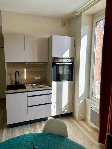 Studio Standard (2 Adultes)    The studio offers soundproof walls, a tea and coffee maker, as well as a private bathroom boasting a shower and a hairdryer. In the well-fitted kitchen, guests will find a stovetop, a refrigerator, kitchenware and an oven. The studio provides a flat-screen TV, a dining area, a wardrobe, a high chair for children as well as city views. The unit has 2 beds. | ||