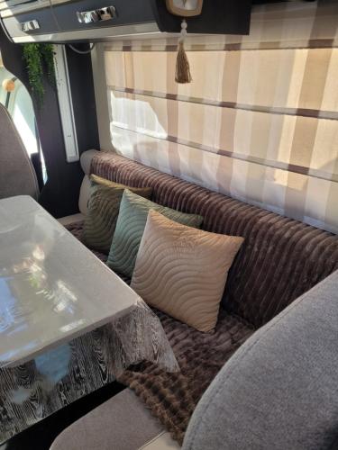 ![]() ![]() ![]() ![]() ![]() This mobile home features 1 living room, 1 separate bedroom and 1 bathroom with a shower. The mobile home's kitchenette, which features a refrigerator and kitchenware, is available for cooking and storing food. This mobile home has a seating area, a dining area, TV, as well as wine/champagne for guests. The unit has 4 beds. |