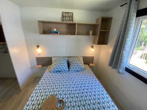 Mobile Home Confort 2 Chambres - 4 Personnes - Vue sur Mer      Ce mobile home comprend 1 salon, 2 chambres séparées et 1 salle de bains pourvue d’une douche. La cuisine bien équipée est munie de plaques de cuisson, d’un réfrigérateur, d’un micro-ondes et d’ustensiles. Ce mobile home dispose d'une machine à café, d'un coin salon, d'une armoire et d'une terrasse avec vue sur la mer. Ce logement comporte 3 lits. | ||