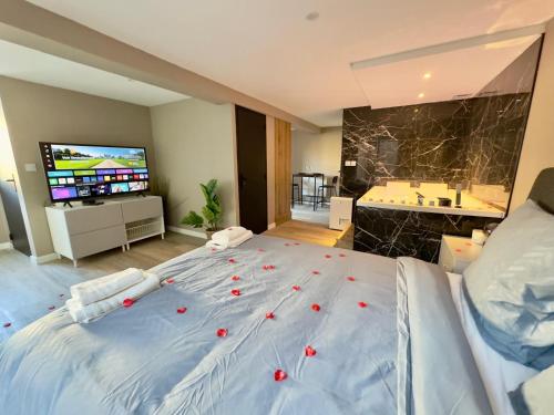 ![]() ![]() Guests will have a special experience as this apartment offers a hot tub and a spa bath. Featuring 1 bedroom and 1 bathroom with a hairdryer, this apartment offers a well-fitted kitchen and a terrace. Guests can make meals in the kitchen that is equipped with a stovetop, a refrigerator, a microwave and an electric kettle. The apartment provides a private entrance, a dining area, parquet floors, heating and a flat-screen TV. The unit has 1 bed. |