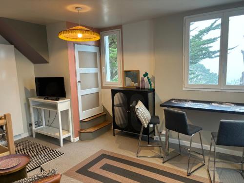 L’hébergement Isis vue mer offre une vue sur la mer, à environ 600 mètres de ce lieu d’intérêt : Plage des Sables Blancs. Il comprend un patio et une machine à café. Cet hébergement en bord de mer met à votre disposition un balcon, un parking privé gratuit et une connexion Wi-Fi gratuite. Cet appartement comporte 2 chambres, 1 salle de bains, du linge de lit, des serviettes, une télévision à écran plat, une cuisine entièrement équipée et une terrasse offrant une vue sur la ville. Vous pourrez profiter d’un jardin sur place et pratiquer la randonnée dans les environs. Vous séjournerez à respectivement 27 km et 27 km de ces lieux d’intérêt : Musée départemental breton et Gare de Quimper. |