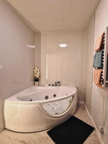 ![]() ![]() ![]() This apartment's special feature is the hot tub. This apartment comprises 1 living room, 1 separate bedroom and 1 bathroom with a bath and a hairdryer. Guests can make meals in the kitchen that is equipped with a stovetop, a refrigerator, kitchenware and an oven. The apartment provides a coffee machine, a seating area, a sofa, heating, as well as a flat-screen TV. The unit offers 2 beds. |