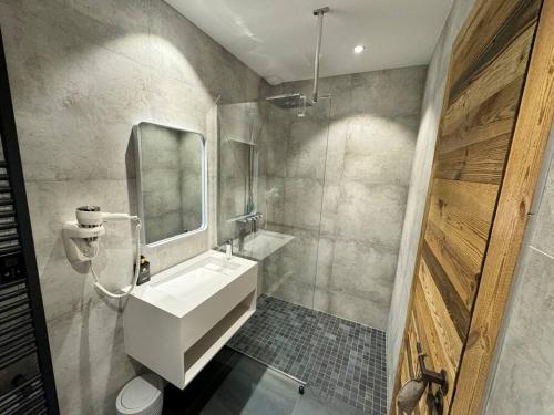 Chalet Supérieur            The hot tub and fireplace are the standout features of this chalet. This spacious chalet features 1 living room, 5 separate bedrooms and 5 bathrooms with a hairdryer. Guests can make meals in the kitchen that features a refrigerator, a dishwasher, an oven and a microwave. Boasting a terrace, this chalet also features a washing machine, a tea and coffee maker and a flat-screen TV. The unit has 7 beds. | ||