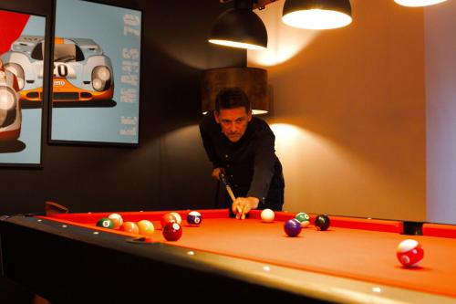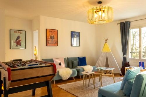 Situé à Étival-lès-Le Mans, l’hébergement Gîte du Soleil dans la Ruelle - La Grouas propose une piscine extérieure ouverte en saison, un bain à remous et un hammam. Il dispose également d’une terrasse offrant une vue sur la piscine et le jardin. Cet hébergement met à votre disposition un billard, une table de ping-pong et un parking privé gratuit. Cette villa avec climatisation se compose de 6 chambres, d'un salon, d'une cuisine entièrement équipée avec un réfrigérateur et une machine à café, ainsi que de 5 salles de bains avec une douche et un bain à remous. Des serviettes et du linge de lit sont mis à votre disposition. Cet établissement dispose d’une aire de jeux pour enfants. Durant votre séjour, vous pourrez aussi vous détendre dans le jardin ou dans le salon commun. Vous séjournerez à respectivement 10 km et 12 km de ces lieux d’intérêt : Circuit du Mans et Antarès. |