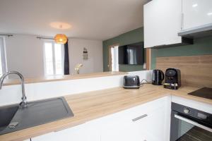 Situé à Eu, l’établissement Escapade Eudoise possède une connexion Wi-Fi gratuite et offre une vue sur la ville. Il se situe à respectivement 33 km et 33 km de ces lieux d’intérêt : Casino de Dieppe et Gare de Dieppe. Tous les hébergements possèdent un coin salon et une télévision à écran plat avec les chaînes du satellite. Leur salle de bains privative comprend un sèche-cheveux et une douche. Un réfrigérateur, un four et un micro-ondes sont également à disposition dans la cuisine, de même qu’une machine à café. Vous pourrez profiter d’un casino sur place, et pratiquer la randonnée et le vélo dans les environs. Vous séjournerez à respectivement 32 km et 33 km de ces lieux d’intérêt : Notre-Dame de Bonsecours et Chateau Musee de Dieppe. |