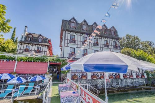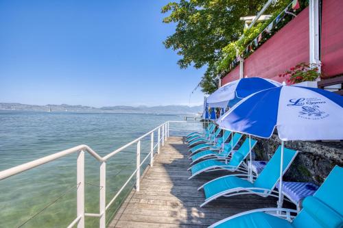Situé au bord du lac Léman, l'hôtel Les Cygnes propose une piscine et un restaurant gastronomique. Il offre une vue splendide sur le lac. Vous pourrez vous détendre sur la plage privée ou sur la terrasse, dans le jardin. Le port se trouve à 50 mètres tandis que les thermes, les commerces et le casino vous attendront à 800 mètres. Dotées d'équipements modernes, les chambres de l'hôtel sont toutes décorées de manière différente. Elles disposent d'une connexion Wi-Fi gratuite ainsi que d'une télévision par satellite à écran plat. Vous pourrez profiter du petit-déjeuner buffet servi sur la terrasse donnant sur le lac, vous détendre sur les pontons privés ou encore admirer les vignes centenaires. Les deux restaurants de l'établissement proposent des repas gastronomiques. Vous apprécierez également le minigolf, l'aire de jeux pour enfants et la maison d'été située dans le jardin fleuri. Grâce au parking gratuit mis à votre disposition, vous pourrez facilement explorer la région Rhône-Alpes en voiture. |