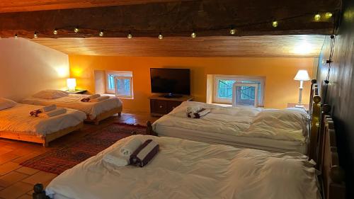 Situé à Fabrezan, l’hébergement Villa Rouge Corbieres offre une vue sur la montagne. Il possède un service de prêt de vélos, une piscine extérieure ouverte en saison, un jardin et une connexion Wi-Fi gratuite. Cet hébergement est installé à 18 km de : Abbaye de Fontfroide. Il propose une terrasse et un parking privé gratuit. Cette villa avec climatisation se compose de 6 chambres, d'un salon, d'une cuisine entièrement équipée avec un réfrigérateur et une machine à café, ainsi que de 5 salles de bains avec une douche et un bain à remous. Une télévision à écran plat avec les chaînes du satellite, un lecteur Blu-ray, une console de jeux et un lecteur CD sont à disposition. Vous séjournerez à respectivement 24 km et 32 km de ces lieux d’intérêt : Réserve Africaine de Sigean et Termes Chateau. L'aéroport le plus proche (Aéroport de Carcassonne) est à 50 km. |