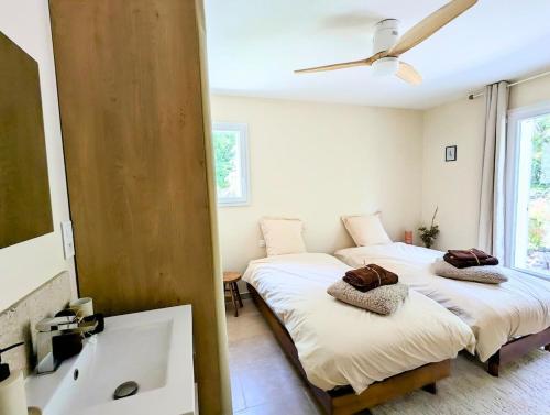 L’hébergement L'Adret du Ventoux vous accueille à Flassan, à respectivement 46 km et 47 km de ces lieux d’intérêt : Gare d'Avignon-Centre et Palais des Papes d'Avignon. Il propose des équipements tels qu’une connexion Wi-Fi gratuite et une télévision à écran plat. Cette villa possède une piscine privée, un jardin et un parking privé gratuit. Cette villa se compose de 3 chambres, d'un salon, d'une cuisine entièrement équipée avec un réfrigérateur et une machine à café, ainsi que de 3 salles de bains avec une douche et un sèche-cheveux. Des serviettes et du linge de lit sont mis à votre disposition. Vous pourrez profiter d’une piscine extérieure ainsi que d’une terrasse sur place, et pratiquer le vélo dans les environs. Vous séjournerez à respectivement 50 km et 33 km de ces lieux d’intérêt : Gare TGV d'Avignon et Grottes de Thouzon. L'aéroport le plus proche (Aéroport de Nîmes Alès Camargue Cévennes) est à 103 km. |