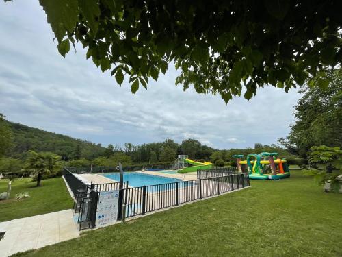 Situé à Foncène, l’établissement Camping le Convivial Mobil home 3 chambres propose une terrasse et un bar, ainsi que des hébergements avec une connexion Wi-Fi gratuite et une télévision à écran plat. Un réfrigérateur et une bouilloire sont également à disposition. Vous séjournerez à respectivement 17 km et 48 km de ces lieux d’intérêt : Gare de Sarlat-la-Canéda et Grotte des Merveilles. L'aéroport le plus proche (Aéroport Brive Vallée de la Dordogne) est à 57 km. |