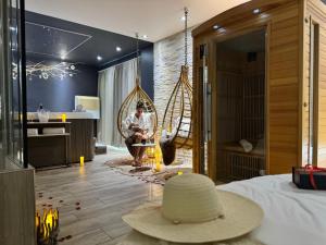 ![]() ![]() Guests will have a special experience as this suite provides a hot tub, a spa bath and a sauna. Boasting a private entrance, this suite includes 1 living room, 1 separate bedroom and 1 bathroom with a walk-in shower and a hairdryer. In the fully equipped kitchen, guests will find a stovetop, a refrigerator, kitchenware and an oven. Featuring a terrace, this suite also offers soundproof walls, a minibar and a flat-screen TV. The unit has 1 bed. |