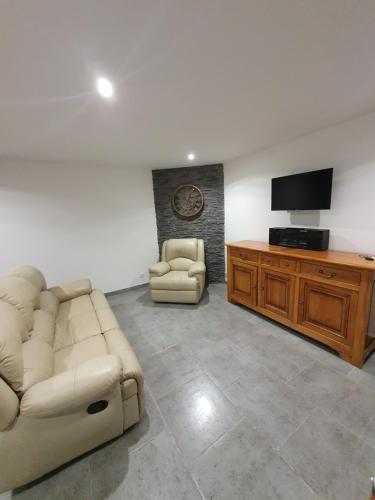 L’hébergement Gîte les 3 têtes de loups vous accueille à Fumay, à respectivement 40 km, 36 km et 41 km de ces lieux d’intérêt : Gare d'Anseremme, Golf - Florennes Avia et Rocher Bayard. Offrant une vue sur la ville et sur la montagne, cet hébergement est installé à 47 km de : Golf de l'Abbaye des Sept Fontaines. Cette maison de vacances se compose de 2 chambres, d'un salon, d'une cuisine entièrement équipée avec un réfrigérateur et une machine à café, ainsi que de 1 salle de bains avec une douche et un sèche-cheveux. Cet hébergement met à votre disposition des serviettes et du linge de lit. Vous séjournerez à respectivement 43 km et 44 km de ces lieux d’intérêt : Gare de Dinant et Château Royal d'Ardenne. |
