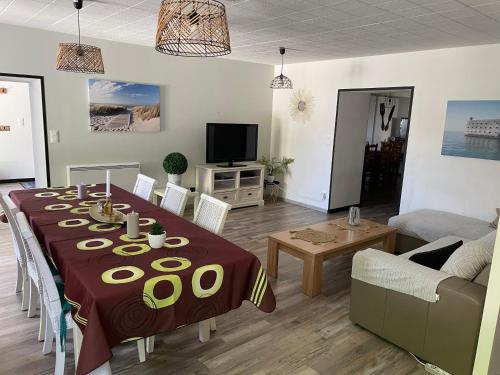 Situé à Gémozac, l’hébergement maison de vacances de 16 a 22 personnes propose une piscine extérieure ouverte en saison et une terrasse. Cette maison de vacances comprend une piscine privée, un jardin et un parking privé gratuit. Cette maison de vacances comporte 2 chambres, une cuisine avec un réfrigérateur et un lave-vaisselle, ainsi que 2 salles de bains avec une douche, un sèche-cheveux et un lave-linge. Une télévision à écran plat est disponible. L'aéroport le plus proche (Aéroport de La Rochelle - Île de Ré) est à 94 km. |