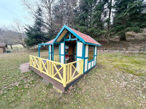Chalet spacieux avec cheminée, proche forêt, sentiers pédestres, terrasse, terrain clos, jeux et WIFI - FR-1-589-187