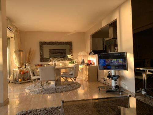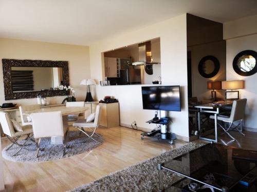 L’hébergement en bord de mer La Mirandole 3 pièces vue mer se situe au Golfe-Juan, à seulement 700 mètres de ce lieu d’intérêt : Plage du Soleil. Il possède une piscine extérieure ouverte en saison, un jardin, une terrasse et une connexion Wi-Fi gratuite. Cet hébergement est installé à 4,6 km de : Palais des festivals de Cannes. Il comprend un court de tennis. Cet appartement avec climatisation se compose de 2 chambres séparées, d'une cuisine entièrement équipée et de 1 salle de bains. Parlant anglais, espagnol, français et italien, le personnel de la réception se tient à votre disposition pour toute question. L’établissement La Mirandole 3 pièces vue mer dispose d’un parc aquatique. Vous séjournerez à respectivement 22 km et 22 km de ces lieux d’intérêt : Musée International de la Parfumerie et Parfumerie Fragonard - L'usine historique Grasse. L'aéroport le plus proche (Aéroport de Nice-Côte d'Azur) est à 21 km. |