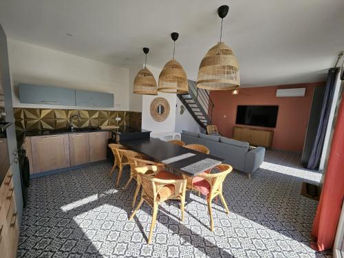 | Situé à Grand-Village-Plage, l’hébergement Maison Mam Oléron offre une vue sur le jardin. Il propose une terrasse et une connexion Wi-Fi gratuite. Cet hébergement est installé à 1,6 km de : Grande Plage. Il possède un jardin et un parking privé gratuit. Cette maison de vacances avec climatisation se compose de 2 chambres, d'un salon, d'une cuisine entièrement équipée avec un réfrigérateur et une machine à café, ainsi que de 2 salles de bains avec une douche. Des serviettes et du linge de lit moyennant des frais supplémentaires. Vous séjournerez à respectivement 14 km et 35 km de ces lieux d’intérêt : Fort Boyard et Zoo de La Palmyre. L'aéroport le plus proche (Aéroport de La Rochelle - Île de Ré) est à 76 km. |