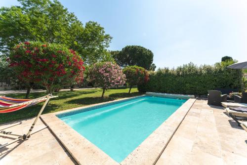 L’hébergement Le Mas se trouve à Graveson, à respectivement 14 km et 15 km de ces lieux d’intérêt : Gare TGV d'Avignon et Gare d'Avignon-Centre. Il propose une connexion Wi-Fi gratuite, la climatisation, un jardin et un barbecue. Cet hébergement à la campagne comprend un parking privé gratuit et se trouve dans une région où vous pourrez pratiquer des activités telles que la randonnée, le golf et le ping-pong. Cet hébergement à la campagne comporte 2 chambres, 1 salle de bains, du linge de lit, des serviettes, une télévision, une cuisine entièrement équipée et une terrasse offrant une vue sur le jardin. Cet établissement 3 étoiles dispose d’un bain à remous et d’une piscine extérieure. Vous pourrez pratiquer le vélo dans les environs. Vous séjournerez à respectivement 15 km et 21 km de ces lieux d’intérêt : Palais des Papes d'Avignon et Parc des expositions d'Avignon. |