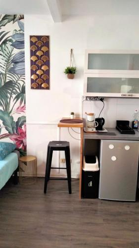 ![]() La kitchenette entièrement équipée est munie d’ustensiles, de plaques de cuisson, d’un micro-ondes et d’un réfrigérateur. Bénéficiant d'une entrée indépendante, ce studio possède un plateau/bouilloire ainsi qu'une salle de bains privative avec une douche et un sèche-cheveux. Le logement compte 1 lit. |