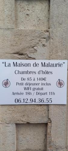 | Informations importantes | Les enterrements de vie de célibataire et autres fêtes de ce type sont interdits dans cet établissement. Veuillez informer l'établissement La maison de Malaurie à l'avance de l'heure à laquelle vous prévoyez d'arriver. Vous pouvez indiquer cette information dans la rubrique « Demandes spéciales » lors de la réservation ou contacter directement l'établissement. Ses coordonnées figurent sur votre confirmation de réservation. Vous ne pouvez pas effectuer votre quarantaine liée au coronavirus (COVID-19) dans cet établissement. Les clients âgés de moins de 18 ans doivent être accompagnés d'un parent ou d'un tuteur légal pour pouvoir s'enregistrer. Hébergement géré par un particulier |