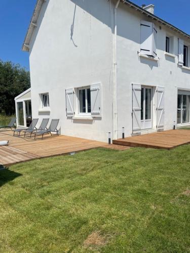 Situé à Guérande, l’hébergement La Villa Sénéchal offre une vue sur la piscine. Il propose une piscine extérieure ouverte en saison, un jardin, une terrasse et une connexion Wi-Fi gratuite. Cet hébergement met à votre disposition une piscine privée et un parking privé gratuit. Cette villa avec climatisation se compose de 4 chambres, d'un salon, d'une cuisine entièrement équipée avec un réfrigérateur et une machine à café, ainsi que de 2 salles de bains avec une douche et un sèche-cheveux. Des serviettes et du linge de lit sont mis à votre disposition. Vous séjournerez à respectivement 7,5 km et 8,4 km de ces lieux d’intérêt : Gare de La Baule-Escoublac et Palais des congrès Atlantia de La Baule. L'aéroport le plus proche (Aéroport de Montoir) est à 23 km. Un service de navette aéroport payant peut être assuré par l’établissement. |
