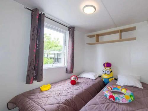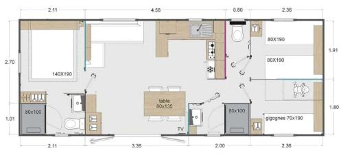 ![]() ![]() ![]() ![]() ![]() ![]() Featuring 3 bedrooms and 1 bathroom with a shower, this mobile home offers a well-fitted kitchen and a terrace. Meals can be prepared in the kitchen, which is equipped with a stovetop, a refrigerator, a dishwasher and kitchenware. The mobile home provides a TV, a private entrance, an electric kettle and heating. The unit has 5 beds. |