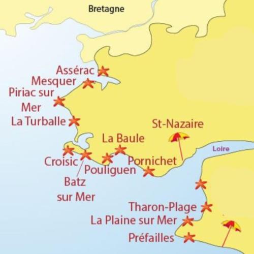L’hébergement Plage & Marais - Maison 3 chambres 6 personnes - se trouve à Guérande, à seulement 4,3 km de ce lieu d’intérêt : Gare de La Baule-Escoublac. Il possède un jardin, une terrasse et un service de concierge. Cette maison de vacances propose un parking privé gratuit, une réception ouverte 24h/24 et une connexion Wi-Fi gratuite. Cette maison de vacances comporte 3 chambres, une cuisine avec un réfrigérateur et un lave-vaisselle, ainsi que 1 salle de bains avec une baignoire, un sèche-cheveux et un lave-linge. Des serviettes et du linge de lit moyennant des frais supplémentaires. Un service de location de vélos est disponible sur place. Vous séjournerez à respectivement 4,4 km et 4,7 km de ces lieux d’intérêt : Palais des congrès Atlantia de La Baule et Casino Barrière de La Baule. L'aéroport le plus proche (Aéroport de Montoir) est à 23 km. |