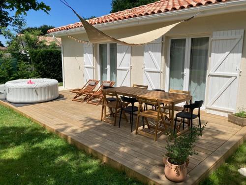 Situé à Gujan-Mestras, l’hébergement Modern family home with hot tub and garden offre une vue sur le jardin. Il possède un service de prêt de vélos, un jardin, une terrasse et une connexion Wi-Fi gratuite. Cette maison de vacances comprend un parking privé gratuit et se trouve dans une région où vous pourrez pratiquer des activités telles que la randonnée, la planche à voile et le squash. Cette maison de vacances compte 1 chambre, une cuisine avec un réfrigérateur et un lave-vaisselle, une télévision à écran plat, un coin salon, ainsi que 2 salles de bains comportant une douche. Des serviettes et du linge de lit sont à disposition. L’établissement Modern family home with hot tub and garden possède un spa et centre de bien-être comprenant un bain à remous. Vous pourrez profiter d’un barbecue sur place et pratiquer le vélo à proximité. Vous séjournerez à respectivement 4,5 km et 5,5 km de ces lieux d’intérêt : Kid Parc - Île d’aventures et Parc d’attractions La Coccinelle. L'aéroport le plus proche (Aéroport de Bordeaux-Mérignac) est à 50 km. |