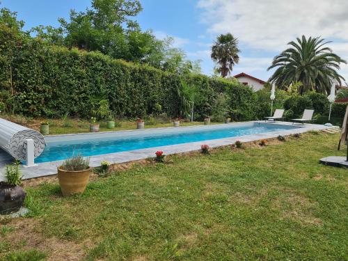 Possédant une piscine, un jardin, une terrasse et connexion Wi-Fi gratuite, l’établissement Appartement avec cuisine et grande piscine chauffée vous accueille à Hendaye et offre une vue sur la piscine. Les hébergements comprennent la climatisation et une télévision à écran plat. Vous bénéficierez d’une cuisine entièrement équipée avec un coin repas, ainsi que d’une salle de bains privative comportant une douche, des articles de toilette gratuits et un sèche-cheveux. Un réfrigérateur, un lave-vaisselle et un four sont également à votre disposition, de même qu’une machine à café et une bouilloire. Vous pourrez bénéficier d’un barbecue sur place. Vous séjournerez à respectivement 1,4 km et 4,6 km de ces lieux d’intérêt : Plage des Deux jumeaux et Gare d'Hendaye. |