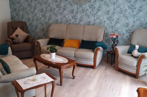 L’hébergement Gîte Guldangel se trouve à Hirsingue, à 22 km de ce lieu d’intérêt : Gare de Mulhouse. Il propose un jardin, une connexion Wi-Fi gratuite, un salon commun et un distributeur de billets. Cette maison de vacances comprend un parking privé gratuit et se trouve dans une région où vous pourrez pratiquer des activités telles que la randonnée, la pêche et les fléchettes. Cette maison de vacances comporte 3 chambres, 2 salles de bains, du linge de lit, des serviettes, une télévision à écran plat, un coin repas, une cuisine entièrement équipée et une terrasse offrant une vue sur la ville. Vous pourrez profiter d’un barbecue sur place et pratiquer le vélo à proximité. Vous séjournerez à respectivement 25 km et 34 km de ces lieux d’intérêt : Parc Expo Mulhouse et Maison blanche et maison bleue. L'aéroport le plus proche (EuroAirport Mulhouse) est à 26 km. |
