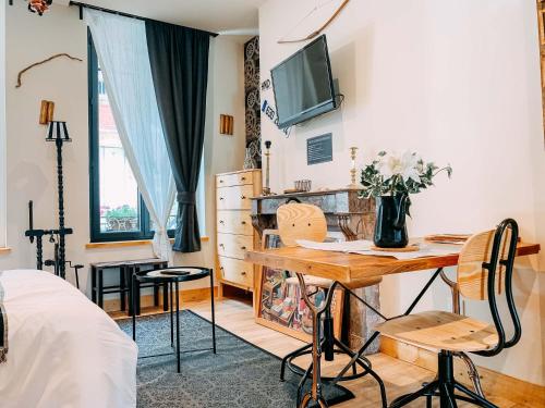![]() ![]() Ce studio dispose d'une salle de bains privative, d'une entrée privée, d'un plateau/bouilloire et d'un coin salon avec une télévision à écran plat. La cuisine entièrement équipée est munie d’ustensiles, d’un micro-ondes et d’un réfrigérateur. Cet hébergement dispose du chauffage et d'une vue sur la ville. Ce logement comporte 1 lit. |